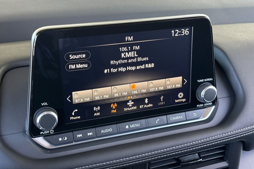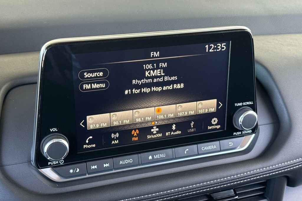 - Radio: AM/FM NissanConnect -inc: 6 speakers plus 2 tweeters, Apple CarPlay, Android Auto, 8" color touch screen display, Bluetooth®, 2 front USB type-C, Wi-Fi hotspot and NissanConnect Services powered by SiriusXM