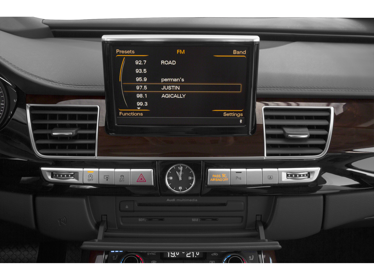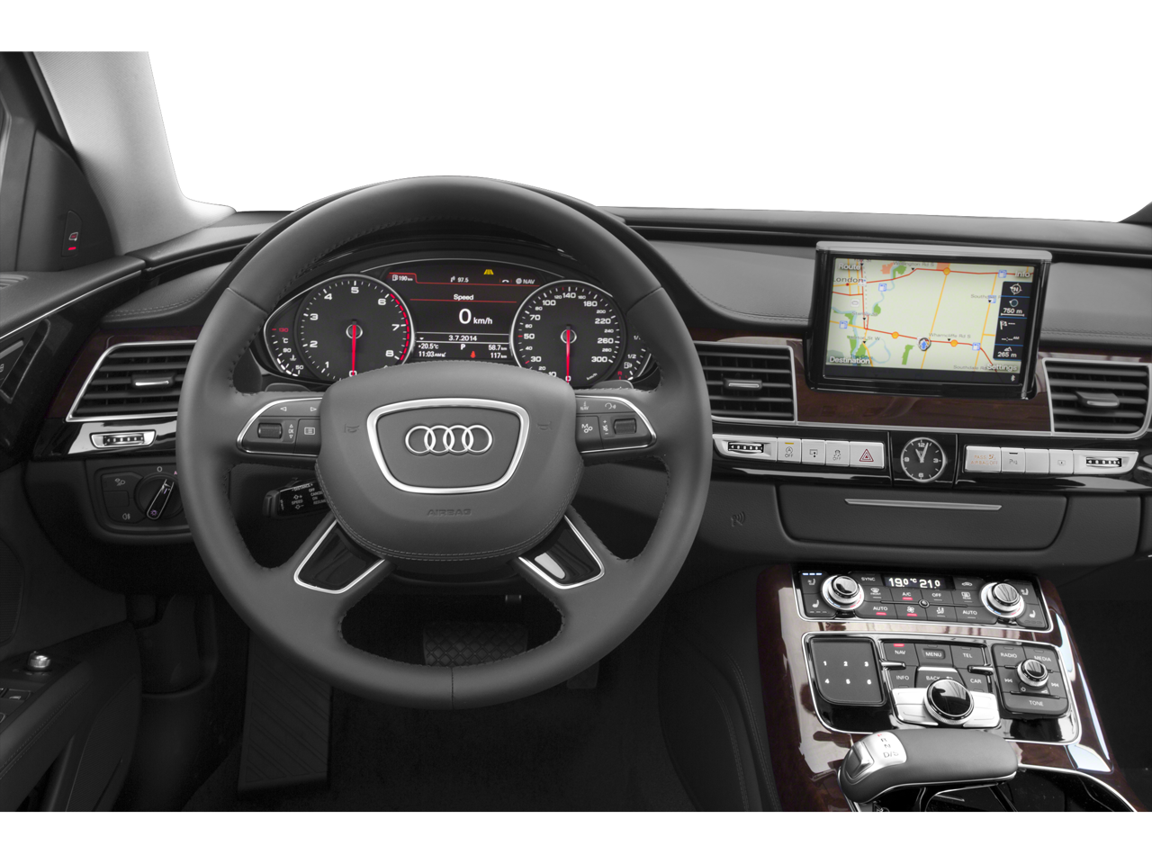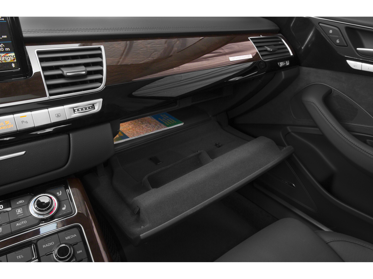 - Radio: Audi MMI Navigation Plus System -inc: Audi connect w/6-month trial subscription, voice control system w/TFT color, MMI touch, WVGA, 8-inch display screen, control knob w/joystick and buttons in center console, operates climate control, central locking, instrument cluster, vehicle diagnostics, cellular phone, navigation, CD and radio functions (single CD/DVD player), Audi music interface w/iPod integration includes 1 cable for iPod connection and 1 USB slot or AUX input, Bose premium surround sound system w/AudioPilot, 14 speakers, center speaker and subwoofer and total output of 630 watts, Bluetooth® wireless technology preparation for mobile phone and streaming audio, HD radio technology, SD card slots w/32GB capacity, SiriusXM satellite radio w/3 month complimentary subscription and SiriusXM traffic w/4-year subscription