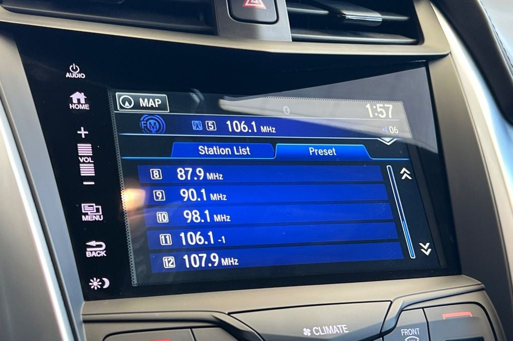 - Radio: Premium Audio System -inc: 8 speakers w/subwoofer, 7" Display Audio touchscreen, Bluetooth® HandsFreeLink, Bluetooth® streaming audio, MP3/auxiliary input jack, USB audio interface, AcuraLink Next Generation, SMS text message function, Pandora compatibility, HD radio, Siri Eyes Free, Android Auto and Apple CarPlay