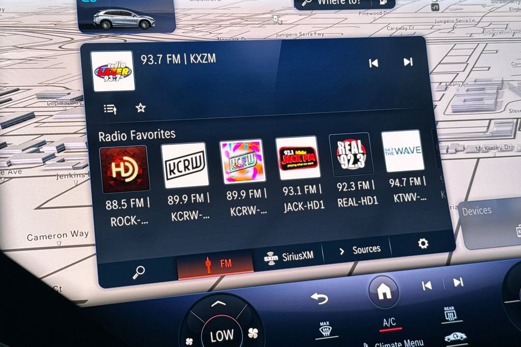 • Radio: Burmester 3D Surround Sound System -inc: Dolby Atmos, EQ sound experience and sound personalization, MBUX hyperscreen w/17.7" OLED central display and 12.3" OLED passenger display, SiriusXM satellite radio w/trial period, MBUX augmented reality for navigation, fingerprint scanner for MBUX profile authentication and wireless smartphone integration (Apple CarPlay and Android Auto)