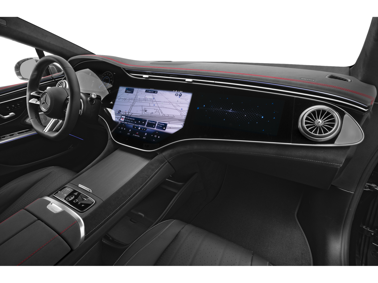- Radio: Burmester 710W Sound System -inc: 15 speakers, 3D sound, EQ sound experience and sound personalization, MBUX hyperscreen w/12.3" driver display, 17.7" OLED central display, and 12.3" OLED passenger display, SiriusXM satellite radio, MBUX profile authentication via fingerprint scanner and facial recognition, wireless smartphone integration (Apple CarPlay and Android Auto)