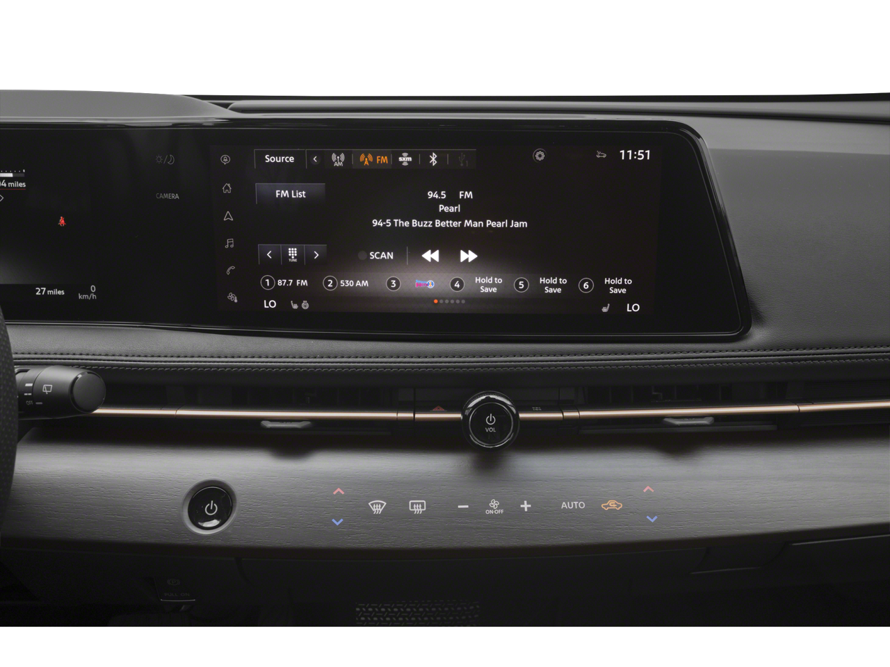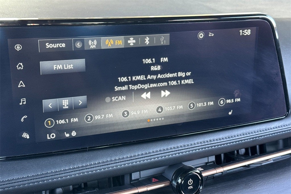 - Radio: AM/FM Audio System -inc: 12.3" color display w/multi-touch control, 6 speakers, MP3/WMA playback, Bluetooth® streaming audio, speed-sensitive volume control (SSV), satellite radio pre-wiring, SiriusXM satellite radio w/advanced features, SiriusXM Traffic, SiriusXM Travel Link, NissanConnect EV featuring wireless Apple CarPlay, wired Android Auto, navigation and NissanConnect services, Bluetooth® hands-free phone system (w/voice recognition in English, French and Spanish), voice destination entry (VDE) and hands-free text messaging assistant
