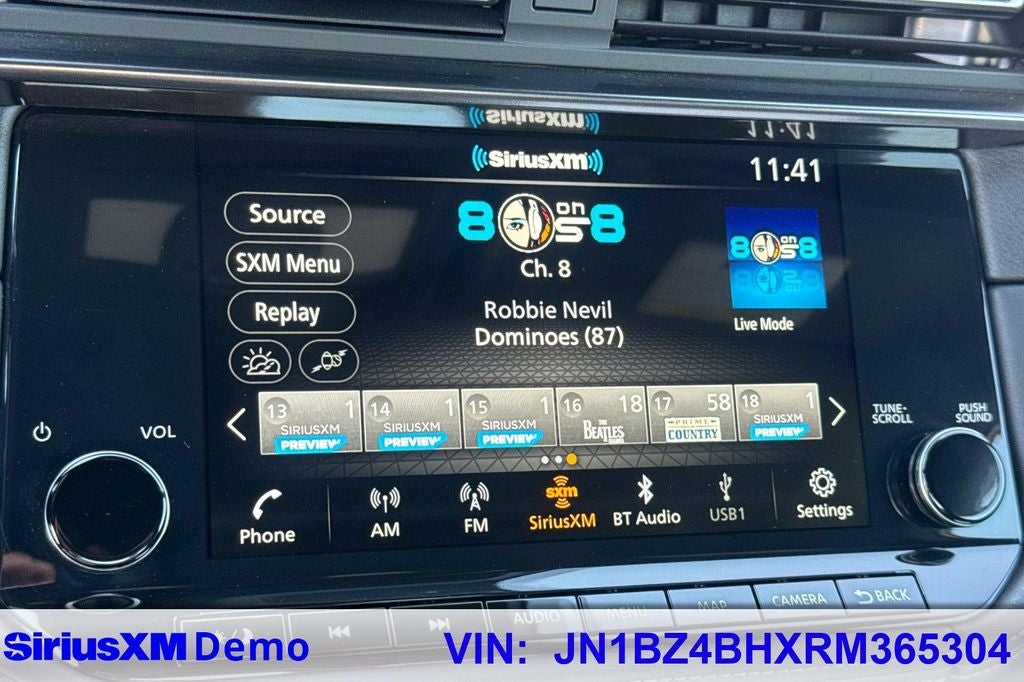 - Radio: Bose Audio System w/8 Speakers -inc: 9" touchscreen w/navigation, active noise cancellation (ANC), active sount enhancement (ASE), Bluetooth® hands-free phone system, streaming audio via Bluetooth®, SiriusXM Radio, wireless Apple CarPlay, Android Auto, hands-free text messaging assistant, voice recognition, Siri Eyes Free, 1 USB type-A, 1 USB type-C, Alexa connectivity and NissanConnect services w/Wi-Fi hotspot